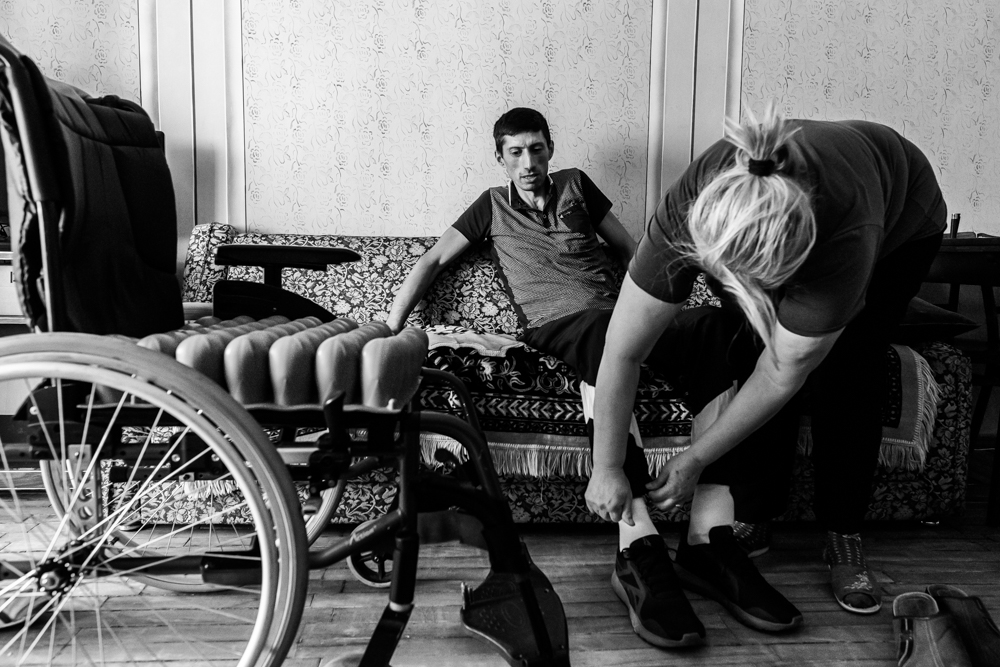 That bullet changed his life forever. After several months in hospital he went to the Rehabilitation Centre for Defenders of the Motherland. Norik arrived at the rehabilitation centre in May and began his return to a different life, confined to a wheelchair. At the centre, Norik spent four months exercising in order to achieve mobility improvements.